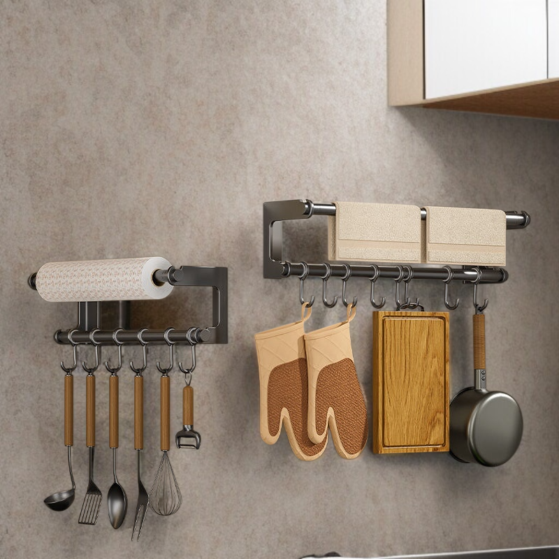 ● 다양한 후크와 선반이 결합되어 냄비, 삽, 수저 등 여러 가지 주방용품과 욕실용품을 효율적으로 정리할 수 있어 공간 활용도가 뛰어납니다.
